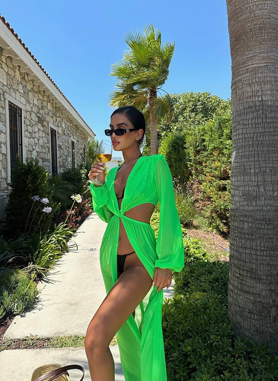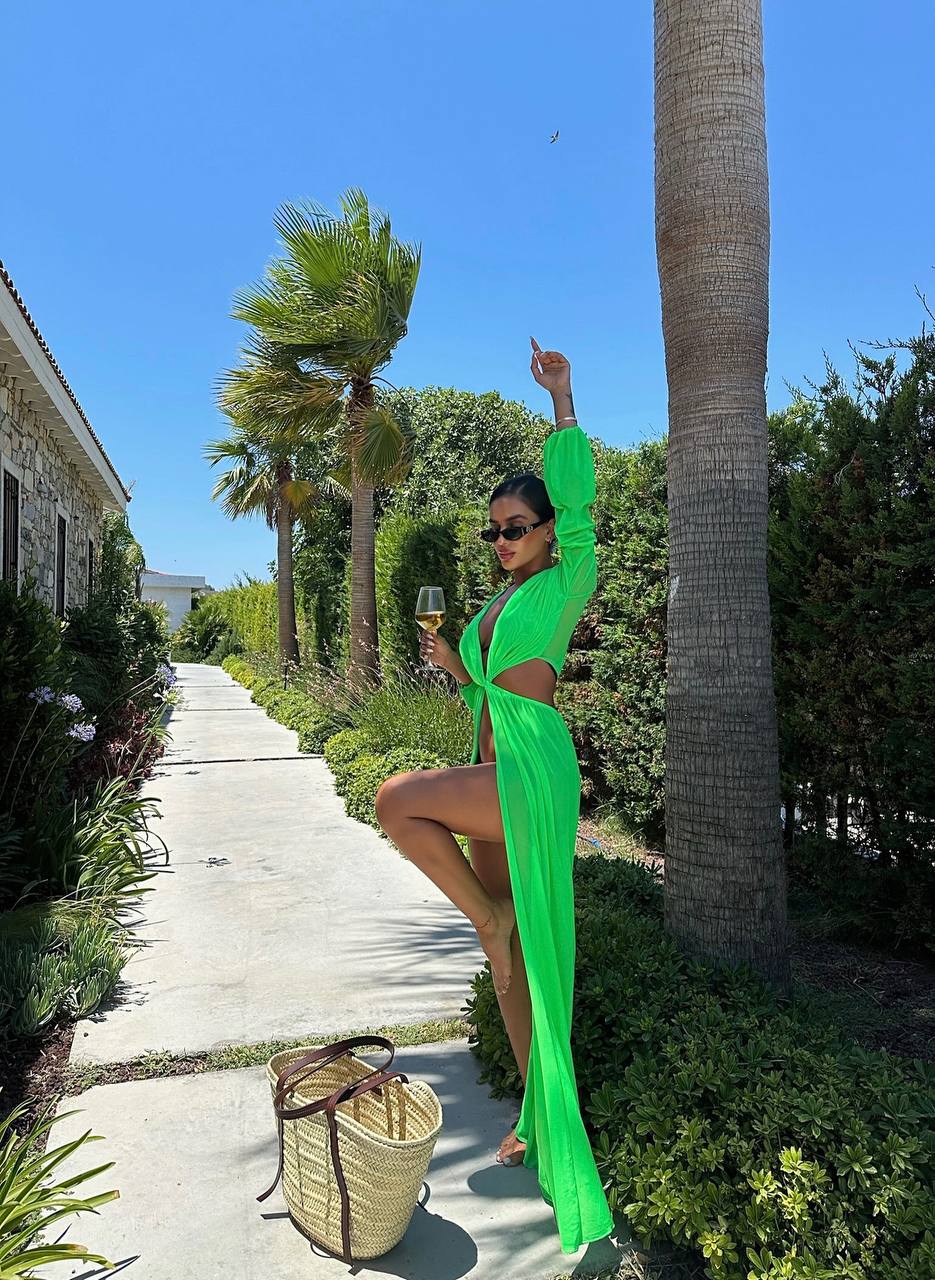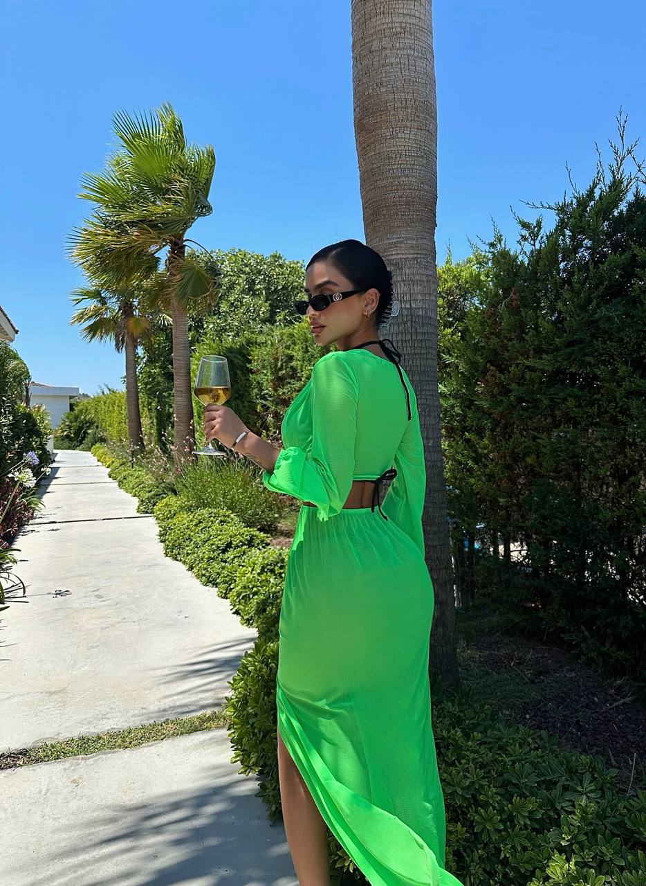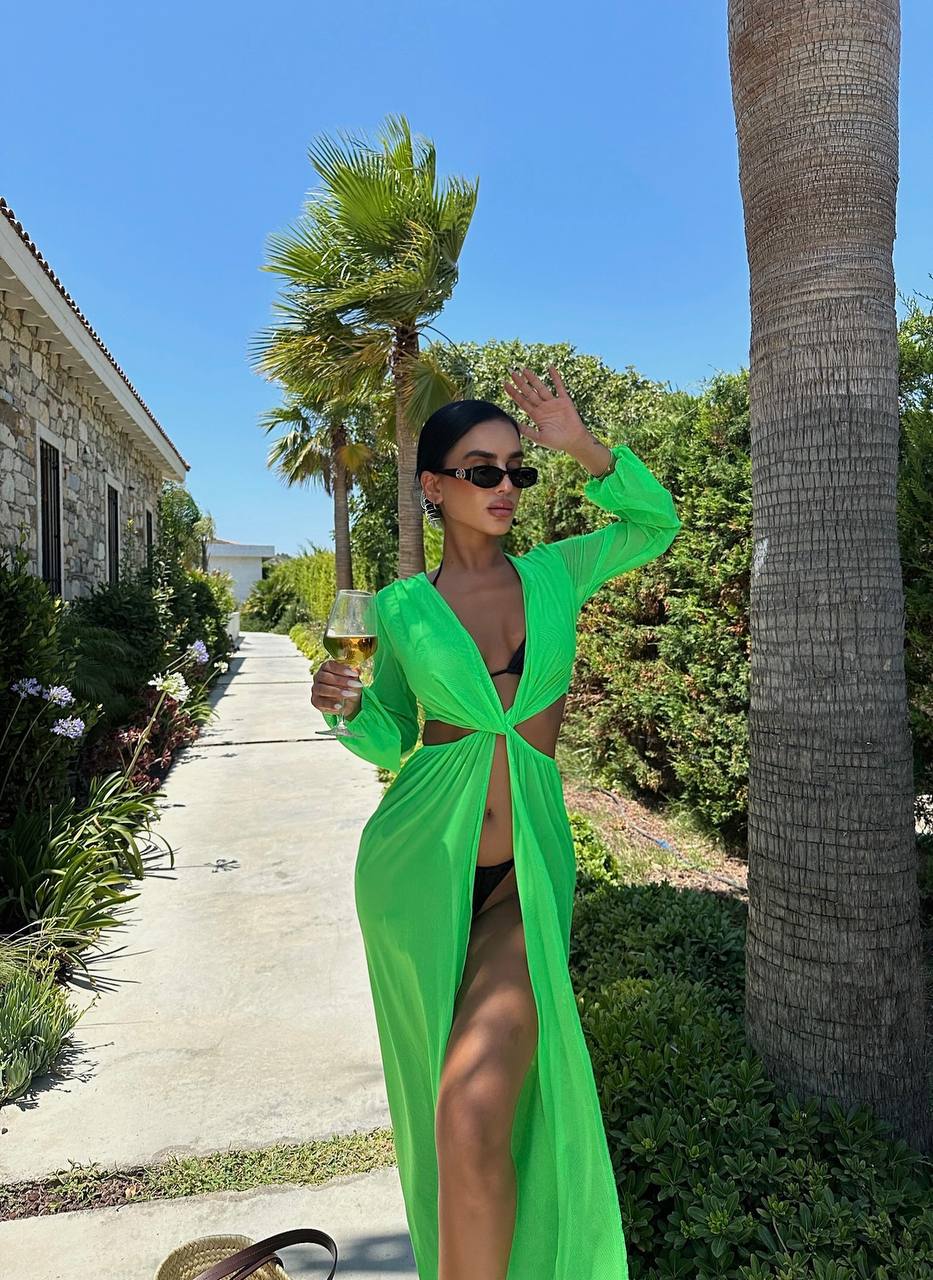 S,M beden tüllü mayo üstü yeşil elbise standart beden
