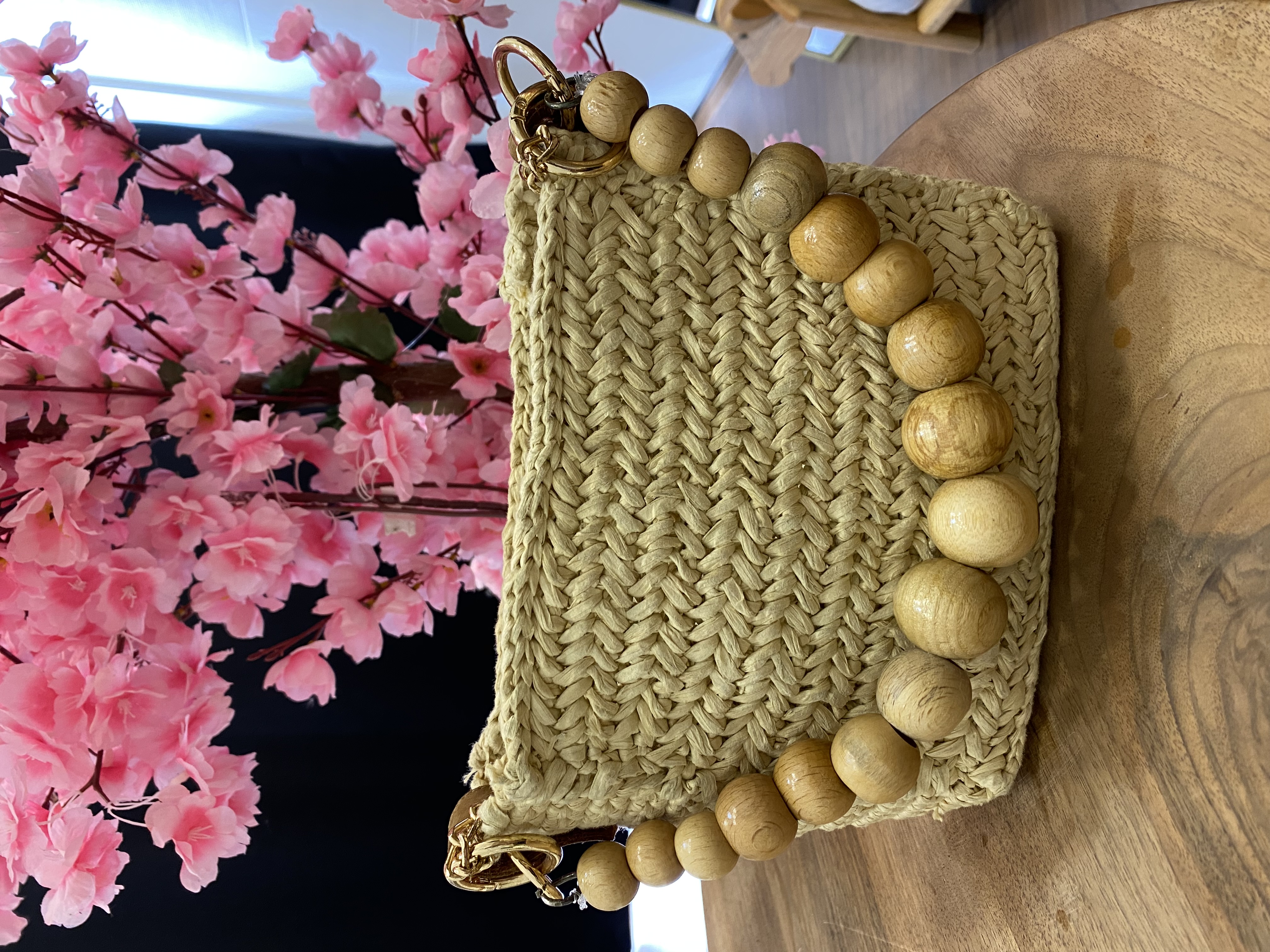 Hem modern hem de doğal stilin buluştuğu bu şık çanta, zincir askısı ve tahta boncuk süslemeleriyle farklılığını ortaya koyuyor. Zarif ama bir o kadar da bohem bir havası olan tasarımı, gündüzden geceye geçiş yapan kombinler için ideal bir tamamlayıcıdır.